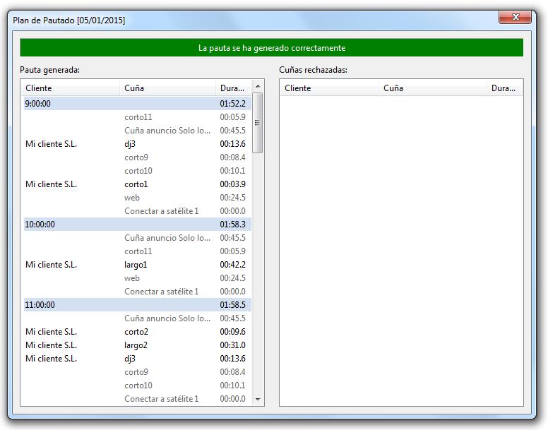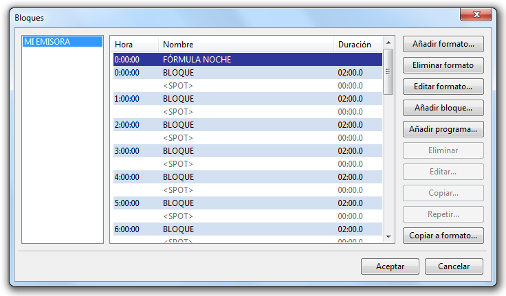 - Posibilidad de emitir cuñas diferentes dependiendo del programa o del tramo horario.
