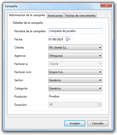 - Permite especificar las fechas en las que se deberá facturar la campaña, así como los importes pendientes.